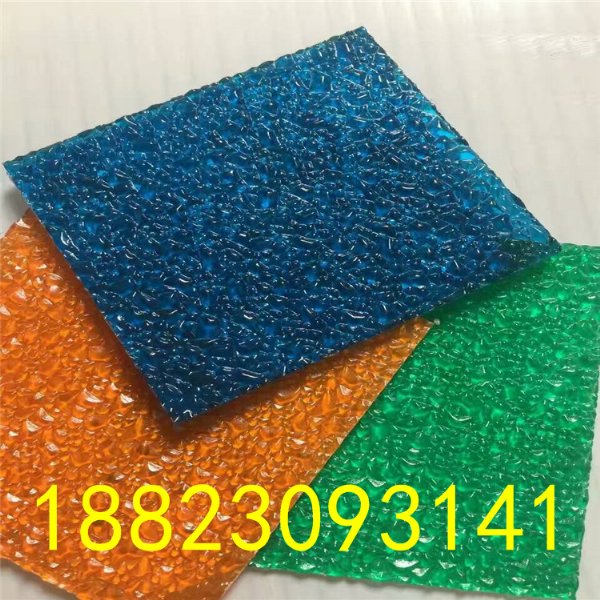 PC颗粒耐力板分几种:钻石颗粒板(大颗粒)、荔枝纹颗粒板、小颗粒耐力板、圆形扩散颗粒耐力板、菱形颗粒耐力板