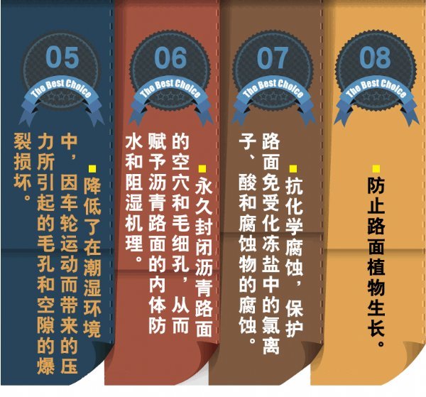 ●**封闭沥青路面的空穴和毛细孔,从而赋予沥青路面的内体防水和阻湿机理