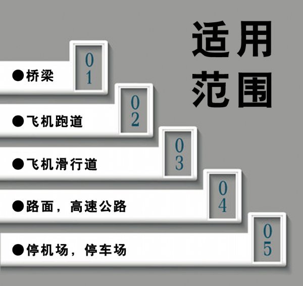 ●抗化学腐蚀,保护路面免受化冻盐中的氯离子、酸和腐蚀物的腐蚀