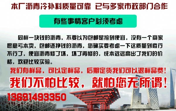 ③ 修补质量佳:冷补料具有极强的抗老化和粘结性能,修补后的坑穴,不易产生脱落、龟裂等不良现象,不需重复修补。