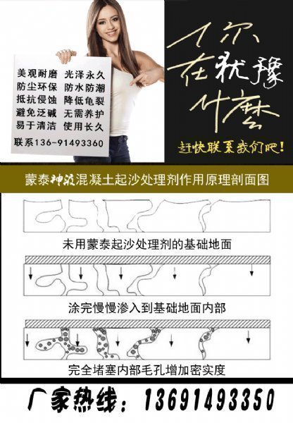 耐腐蚀:经处理后的地面,将大大提高了混凝土的耐腐蚀性能。