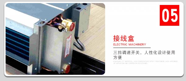 风机盘管采用优质镀锌板机壳,冷凝水盘采用模压工艺一体成型,无焊缝、焊点、符合防火规范的保温材料整体连接于水盘风机盘管体积小:机体设计轻巧排水管及线路安装简便,左右接管及回风方式可随时变换,以配合现场情况机组能安装于任何空间场所风机盘管效率高:先进的胀管工艺,保证了换热器铜管和铝箔的紧密接触,传热性能好;风机盘管噪音低:合理的风机与气流结构设计,优质的吸音保温材料,使机组噪音低于国家标准1-3dB(A);风机盘管能耗低:风机与换热器合理匹配,三档可调风量,使风机用电省风机盘管是中央空调选购中广泛使用的末端设备,规范的全称是中央空调风机盘管机组。