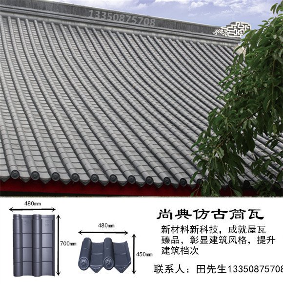 复合聚酯仿古瓦传承中式经典筒瓦或小青瓦风格,是利用现代新工艺与新材料对传统建筑文化元素的完美创新,产品卓尔不凡的装饰效果能更好的彰显建筑风格铸造建筑辉煌。