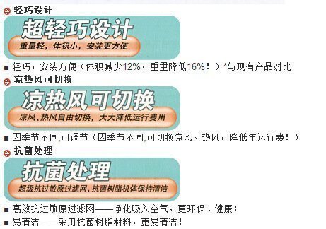 根据季节不同,可调节,因季节不同,可切换凉风\热风,降低年运行费.
