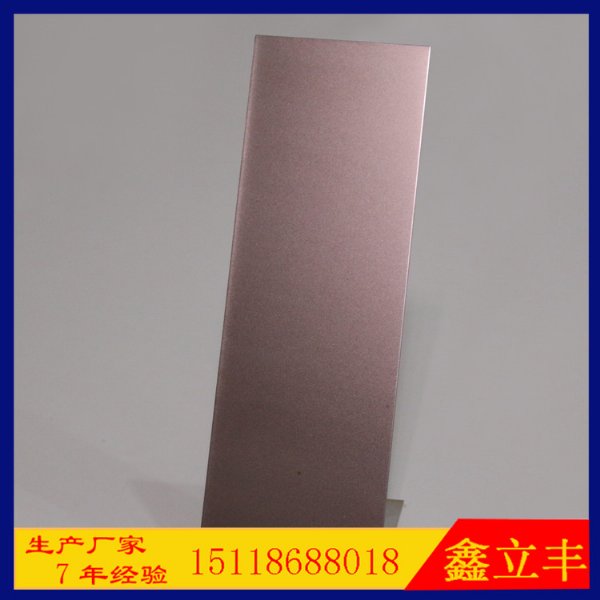 不锈钢喷砂板是一种新型环保材料。不锈钢喷砂板的制造过程并不是在不锈钢喷砂板的表面简单地涂上一层着色剂,就能够产生五彩缤纷的色彩,而要通过十分复杂的工艺过程来实现。目前,采用的方法主要是酸性浴氧化着色法,使不锈钢喷砂板的表面生成一层透明的铬氧化物薄膜,光线照到上面之后,会因薄膜厚度不同而产生不同的颜色。对不锈钢喷砂板进行彩色加工的整个过程包括着色处理和硬膜处理两个步骤。着色处理是在热铬硫酸溶液槽中进行,不锈钢喷砂板浸入之后,就会在表面生成一层只有一根头发丝直径的百分之一厚的氧化膜。随着时间的延长和氧化膜厚度的增加,不锈钢喷砂板表面的颜色也在不断发生改变。当氧化膜厚度从0.2微米增加到0.45米时,不锈钢喷砂板表面的颜色会依次呈现蓝、金、红、绿色。人们通过控制浸渍时间,就可以得到所需要的不锈钢喷砂板。再经过硬膜处理后,就可以在阴极上生成三氧化二铬、氢氧化铬等稳定化合物。既填塞了氧化膜中的微小孔隙,还提高了氧化膜的耐磨性、耐蚀性和耐热性,使材料的整体性能大为提高。不锈钢喷砂板表面耐腐蚀性、耐磨性比普通不锈钢强,能抵御10年以上的盐雾腐蚀和30年以上紫外光照射不变色。主体与着色层一体化,保持了原不锈钢喷砂板的基本结构和基本性能,可进行常规的模压和拉伸成型加工。不锈钢喷砂板着色表面具有色彩斑斓、色泽鲜艳、色调艳丽、柔和、雅致、光洁度强等优点。 - 佛山市鑫立丰金属制品有限公司