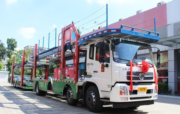 我厂是专业生产轿运车的生产厂家,东风天锦轿运车可谓是上市较早的一批车型,符合新规标准,有单桥及双桥两种规格,可拖挂,一次可拉到8-10台商品车.