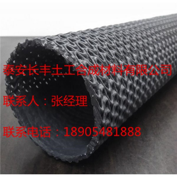 硬式透水管产品特点:重量轻,易于运输及操作。适应的温度范围广。耐侯性(抗老化)优越,使用寿命长。抗冲击能力强,具有优良的抗化学腐蚀能力。 集水能力强,流体流动速率快,可将集水迅速排走,避免水土流失。底部为无孔部分,利于集水迅速排出,防止二次渗漏。