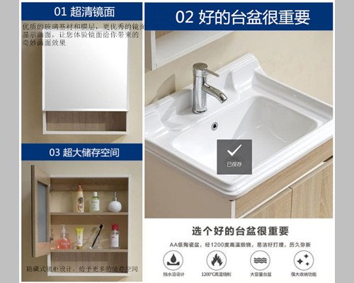 产品型号:AS-6147-100 产品名称:浴室柜 产品材质:多层实木生态板 台盆类型:陶瓷盆+人造石台..