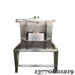 筒体底部中央装有气动(手动)翻板阀,圆弧阀门紧紧嵌入筒内,与筒内壁齐平,无物料堆积和混合死角现象,可靠的边条式密封,保证在频繁的开关中无泄漏现象。