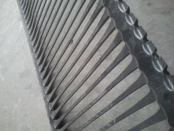 塑料土工格栅:双向塑料土工格栅经过拉伸形成的具有方形或矩形的聚合物网材,按其制造时拉伸方向的不同可为单向拉伸和双向拉伸两种。它是在经挤压制出的聚合物板材(原料多为聚丙烯或高密度聚乙烯)上冲孔,然后在加热条件下施行定向拉伸。单向拉伸格栅只沿板材长度方向拉伸制成;双向拉伸格栅则是继续将单向拉伸的格栅再在与其长度垂直的方向拉伸制成。