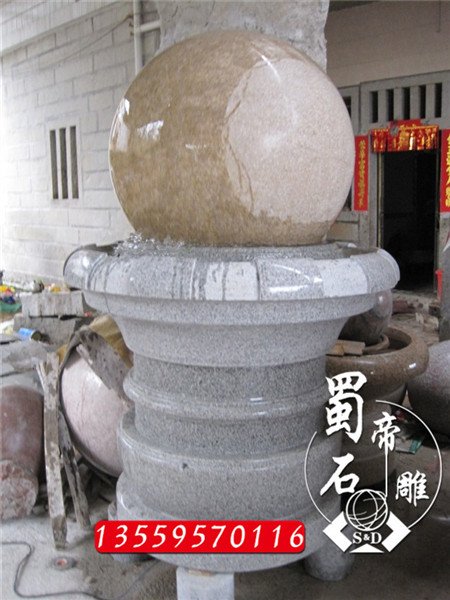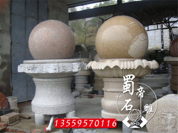 风水球是一种可以转动的球状物。将风水球安置在喷泉上可以说是我们惠安石雕师傅的一大创新,不仅增加了石雕水钵的美观度,还扩大了石雕喷水池的应用,增加了喷泉雕塑的风水效果。