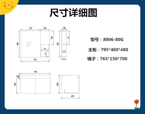 浴室柜,蒙诺雷斯8006-80G环保柜