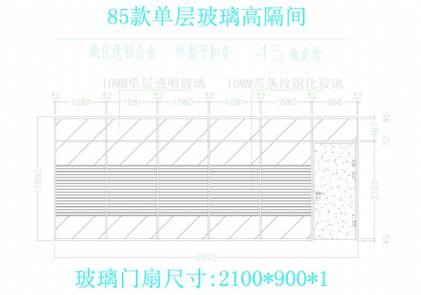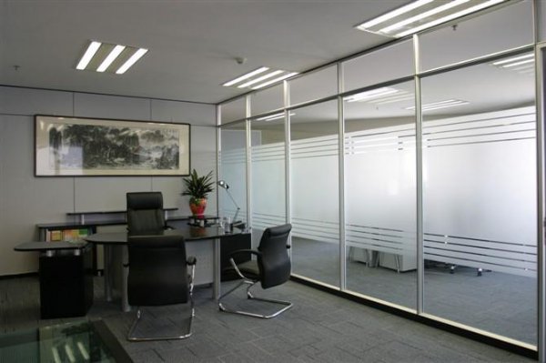 铝合金框架可根据客户需要颜色进行表面氟碳喷涂,色泽丰富多样。比较传统隔墙,玻璃分隔装修具有现代感和环保理念,提升了空间的利用率,降低隔断造价,所用玻璃除了采用钢化玻璃,也可为磨砂玻璃,玻璃的厚度一般为双玻5MM和6MM、单玻8MM和10MM。这样使得隔断美观的同时具备一定的强度,增强了安全性,采光效果好。