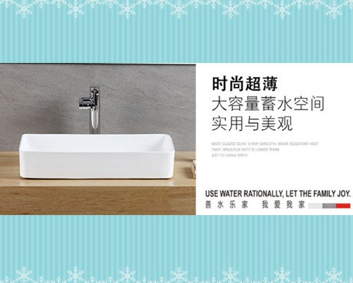 - 陶瓷洗手盆长方形白色单龙头孔台上盆带溢虹口520mm