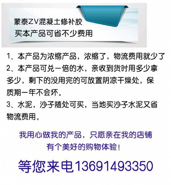 1. 配好的混凝土可达55mpa以上,具备良好的韧性、粘接性、抗裂性。