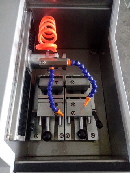 砥锋牌GTQ-5000B金相精密切割机图片说明 概述 GTQ-5000B型精密切割机适用于对金属、电子元件、陶瓷材料、晶体、硬质合金、岩样、矿样、混凝土、有机材料、生物材料(齿、骨)等材料进行精密的无变形切割。 该设备定位精度高;调速范围大;切割能力强;强循环冷却系统;可预设进刀速度;触摸屏控制显示,易于操作控制;自动切割可减少操作者的疲劳,保证了试样制作的一致性;宽大明亮的带安全开关切割室,用户可以把设定好的参数进行保存到用户参数界面,不同材料切割选取用户储存参数即可,不需要每次从新设置参数。是工矿企业,科研院所制备高品质试样的理想设备之一。是工矿企业,科研院所制备高品质试样的理想设备之一。