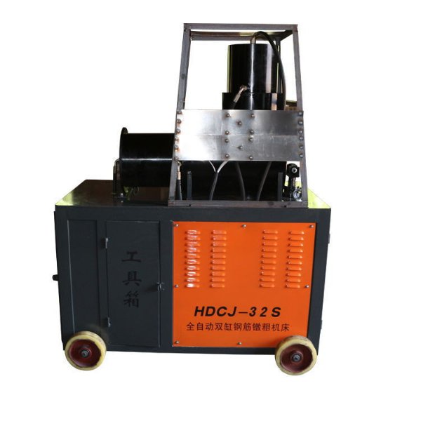 本机是建筑钢筋连接的上道工序机械,它的主要功能是把建筑用螺纹钢筋头部挤压镦粗,达到增加钢筋头部直径的目的。本机床采用先进液压系统和电动结构原理,机床启动后,只需按一次按钮,即可完成一次镦粗操作且自动回程,模具长期可使用,加工效率快、质量好。