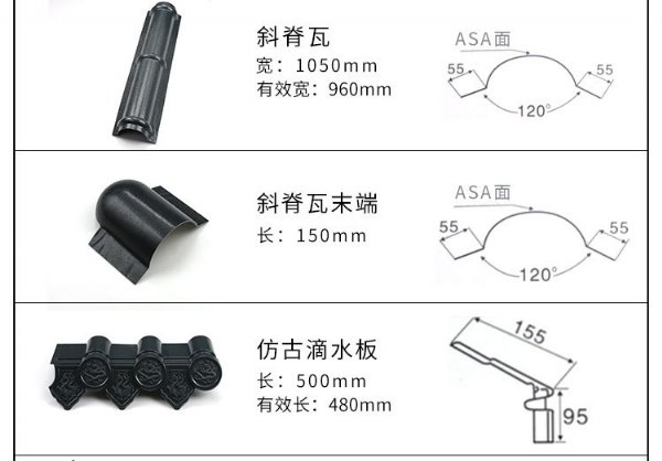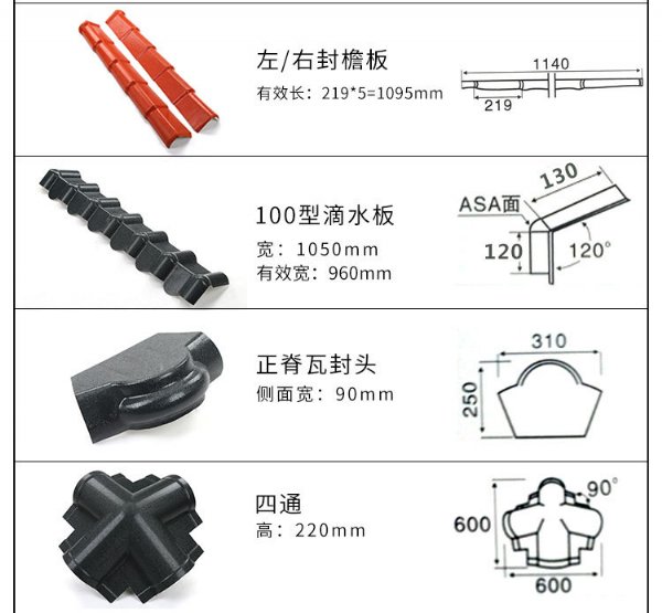 福建厂家直销山墙泛水板 合成树脂瓦配件 仿古屋面瓦 隔热别墅瓦