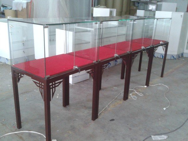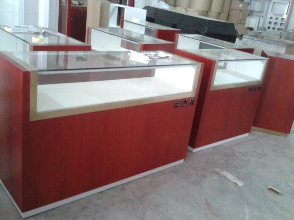 深圳华信珠宝展柜制作工厂,高档烤漆珠宝展示柜订制