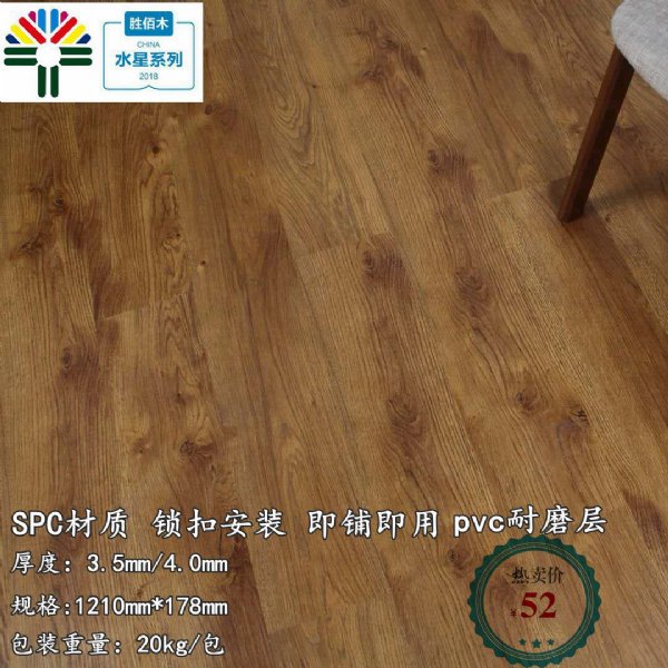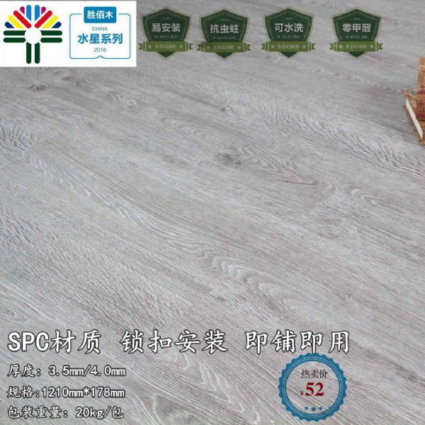 SPC地板是目前国内环保级别非常高的地板产品,*无味,而且表面防滑层做防水处理,遇水防滑。产品使用寿命可达10年以上,适合广州南方气候,对于出租屋二次装修,以及会所,美容院,幼儿园等工装场所是非常适合的,手抓木纹效果,防白蚁、易清洁,密度高,无异味、不翘不裂、不腐不霉,不怕水。免钉安装,免胶铺张、免龙骨,可重复使用,锁扣安装,即铺即用。