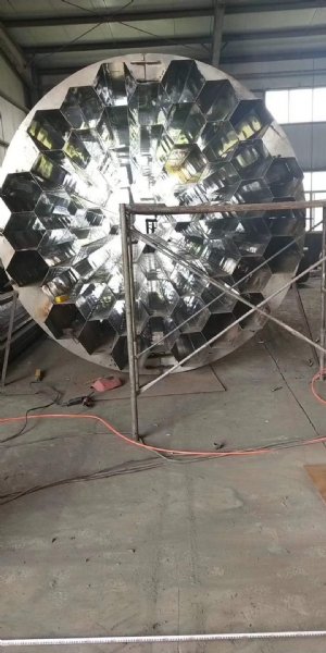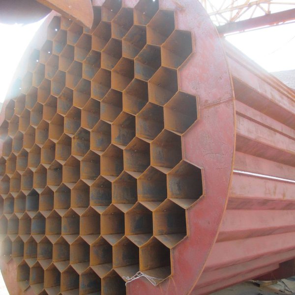 3)蜂窝式电捕焦油器。蜂窝式与管式的结构相同,是将通道截面由圆形改为正六边形。两个相邻正六边形共用一条边,即靠中间的正六边形的六条边均被包围它的六个正六边形所共用。用2~3Mm的钢板制成的蜂窝板即可满足工艺和机械强度的要求。由于蜂窝式电捕焦油器具有结构紧凑合理、没有电场空穴、有效空间利用率高、重量轻、耗钢材少和捕集特性好等优点,但存在制造难度大.在运输安装过程中易产生误差等缺点。随着设备制造工艺水平的提高,蜂窝式电捕焦油器的优点会越来越受到人们的重视,必将逐步取代同心圆式和管式电捕焦油器。