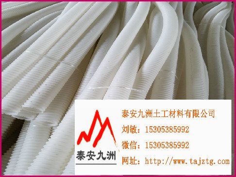 塑料盲沟是由PP塑料颗粒经改性在热熔状态下通过喷嘴挤压出来的塑料丝条再通过成型装置将挤出的塑料丝在结点上熔结形成的三维立体网。塑料芯体外包土工布可有效防止泥砂等的阻塞。塑料盲沟开孔率高耐压强度大具有抗老化透水率高等优点。泰安九洲土工材料有限公司主要生产经营各种土工合成材料。土工布、复合土工膜、hdpe膜、膨润土防水毯(GCL)、三维植被网、土工格室,土工格栅,蓄排水板,水土保护养殖毯等工程材料。规格如下:单向塑料土工格栅TGDG25 TGDG35 TGDG50 TGDG80 TGDG110 TGDG120 TGDG150 幅宽1米-3米;双向土工格栅 TGSG15-15 TGSG20-20 GSG25-25 TGSG30-30 TGSG40-40 幅宽2.5-5m米;钢塑复合格栅GS30-30 GS50-50 GS60-60 GS80-80 GS80-60GS150-150 幅宽4-6m米;土工网垫 EM2 EM3 EM4幅宽1.8-2米;土工格室TGGS100-400 TGGS0-15400 TGGS200-400;玻纤格栅BJG35-35 BJG50-50 BJG60-60 BJG80-80—BJG300幅宽4-6米;经编涤纶格栅TGS-D20-20 TGS-D30-30 TGS-D40-40 TGS-D50-50 TGS-D50-35 TGS-D80-50 TGS-D80-80 排碱管(排盐管,塑料滤管,排水管、包布打孔波纹管)¢40 ¢50 ¢80.¢110.¢160.¢200。。。。¢1000mm;排水管、包布打孔波纹管、软式滤管.排盐管、真空预压滤管.塑料滤管、排水管、排碱管、玻纤土工格栅、透水波纹管、双向土工格栅、涤纶土工格栅、单向塑料土工格栅、新型三维土工网垫、三向土工格栅,高强度土工网、土工格室、生态袋、 产品主要应用于公路、铁路、水利、电力、水土保持及环境绿化与基础建设领域,已被广泛应用于高速公路、铁路等多项国家重点工程,受到工程界*及广大用户的一致好评。