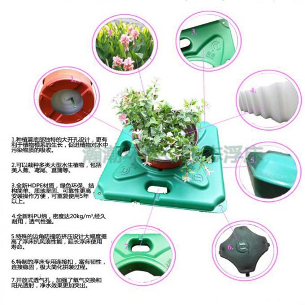 生态浮岛是一种针对富营养化的水质,利用生态工学原理,降解水中的COD、氮、磷的含量的人工浮岛。它能使水体透明度大幅度提高,同时水质指标也得到有效的改善,特别是对藻类有很好的抑制效果。生态浮岛对水质净化*主要的功效是利用植物的根系吸收水中的富营养化物质,例如总磷、氨氮、有机物等,使得水体的营养得到转移,减轻水体由于封闭或自循环不足带来的水体腥臭、富营养化现象。