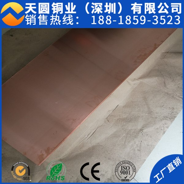 深圳T1配电柜高精紫铜板 导电电极接地用高纯紫铜板