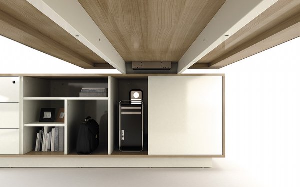4.双边付柜配置四抽四掩门及多空间分隔,柜内暗藏电脑主机位,门、抽采用独特的45度斜边工艺的暗式拉手设计,配合三节路轨,自复位门铰,实用与功能性完美结合。 方式,保证产品的扎实品质与功能部件的完美连接。