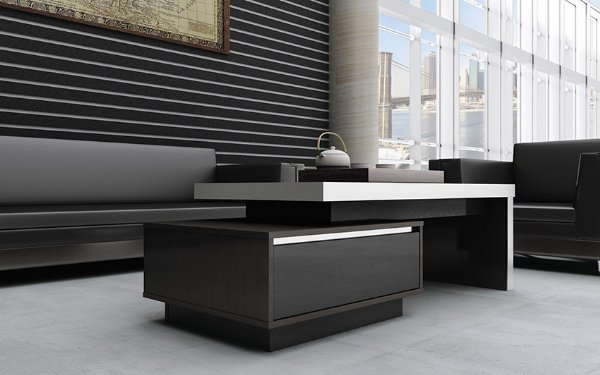 1.全部采用E1环保MFC材质标准,主台面采用四周加厚工艺,厚度50MM,结合氧化原色铝合金四周包边处理,四角R3安全角设计,整体时尚、大气、人性、合理;