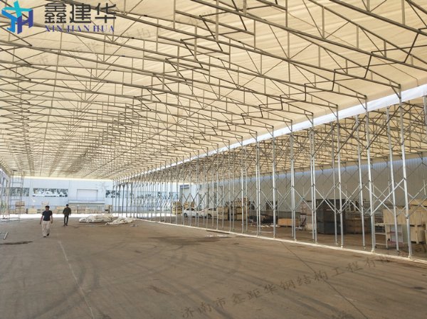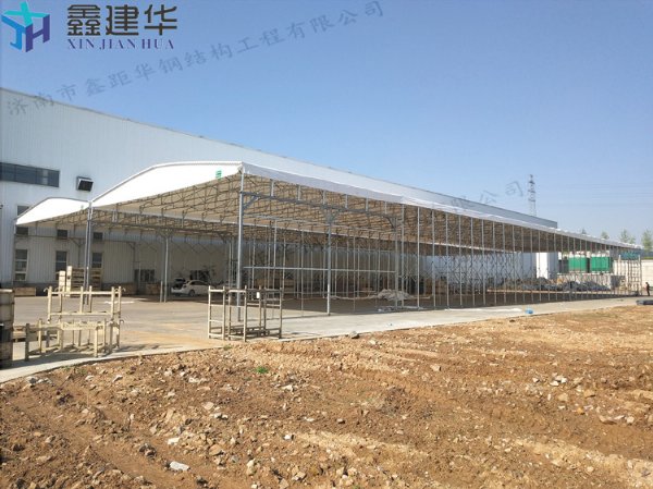 9、可移动,可伸缩,使用时能快捷、轻松的将推拉帐篷展开,闲时收回占用场地的面积可以降到极小四周可封闭也可打开。迁移方便,操作简单,可根据需要进行反复的拆装使用。 - 济南市鑫距华钢结构工程有限公司
