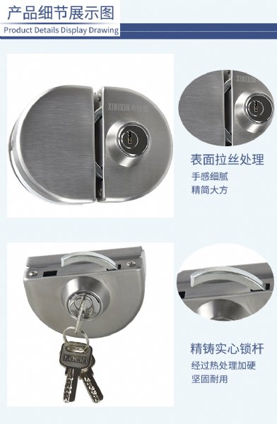 广州希比信玻璃门锁 不锈钢玻璃门锁 有框玻璃门锁