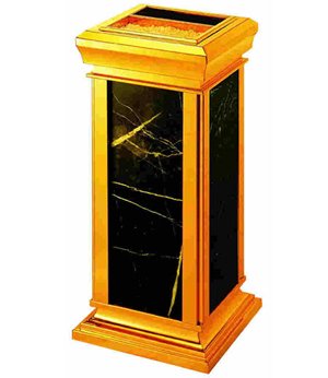 产品表面呈金黄色,光滑亮丽,彰显高贵本色,因此,钛金垃圾桶是不少星级酒店、宾馆、娱乐城、银行、商务写字楼等单位的*。