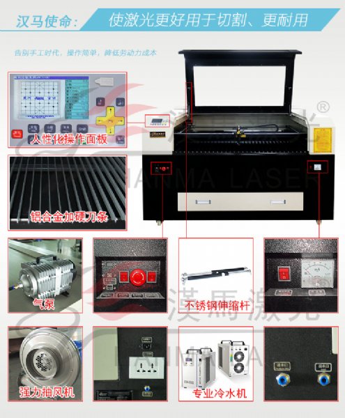 商标、布料、皮革、木材、竹筒、纸张、亚克力、有机玻璃、橡胶、塑料、毛料、瓷砖、水晶、玉石以及其他非金属材料 - 广州汉马自动化控制设备有限公司