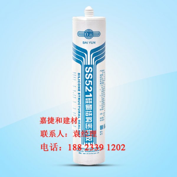 白云结构胶SS521是单组分、中性固化,专为玻璃、铝板幕墙和玻璃采光顶及金属结构工程的结构粘结密封而设计的硅酮结构密封胶,具有优异的结构粘结性能和耐气候老化性能,经过人工加速气候老化测试,密封胶的各项理化性能无明显变化。用胶枪将胶从密封胶筒中挤到需要粘结密封的部位,密封胶在室温下吸收空气中的水分,固化成弹性体,形成有效密封。