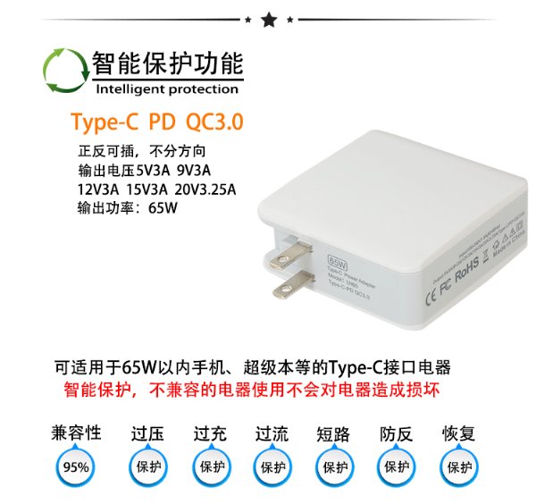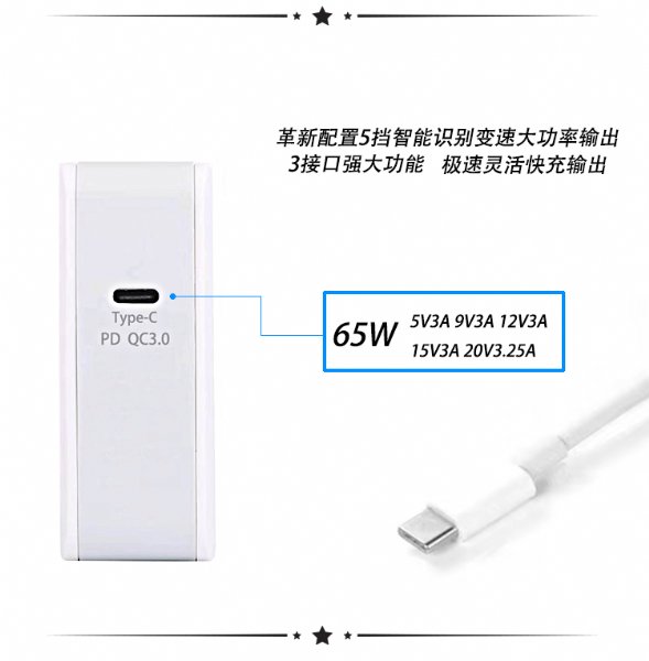 PD协议Type-C快充65w电源适配器markbook por充电器