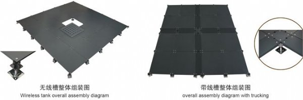 内腔填充发泡水泥填料,支架为镀锌及铸铝合金结构,高度可调节并能自锁,地板四周成型有切边与铆接两种。由于智能化楼宇配线复杂,功能齐全,故出线接口繁多。该地板配有双面出线口,避免了合金全钢地板出线裁锯之不便。安装采用无梁角锁,具有牢靠、稳定、调平简便之特点。