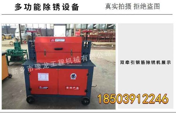 豫龙工程钢管调直机调直机特性:1﹑采用机械传动,结构合理﹑性能稳定﹑操作简便。2﹑多功能一体化,一次性完成钢管调直﹑除锈﹑涂漆多项操作。对钢管无损伤拉长现象,省时﹑省力﹑高效﹑环保。3﹑机械速度可变速调节,分别调直φ48--51mm的钢管。4﹑运行平稳﹑噪音低﹑移动方便。5、每分钟处理6-12m钢管,日处理量30吨左右矫直修复在建筑施工中弯曲的φ48-51mm脚手架钢管