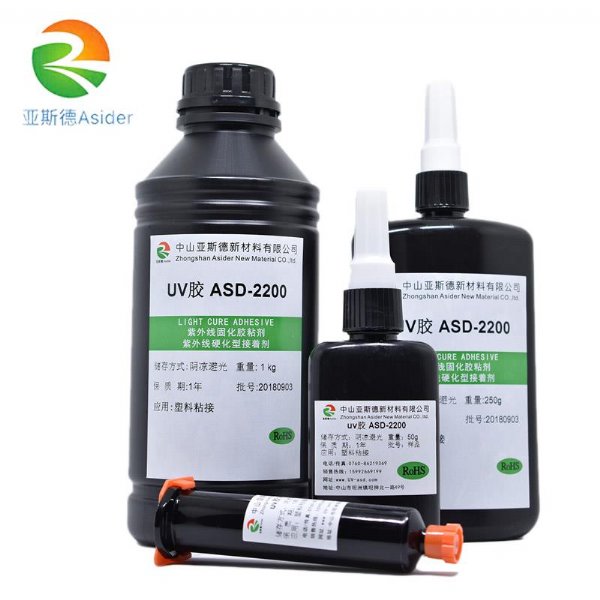 UV胶水 UV胶水厂 无影胶 无影胶水 无影胶水厂 ASD2200PC粘PC无影胶是一种单组份紫外线/可见光固化改性丙烯酸酯胶粘剂,粘接强度高,透明度高,不黄变,不发白,耐候性好!粘度较高,对塑料自粘或互粘及与玻璃粘接都有较高的强度,主要适用于玻璃及PMMA、PC、ABS、PVC、PS、SAN等各种塑料材料粘接,广泛应用于玩具、工艺品、灯饰等行业。