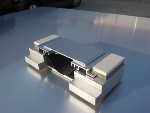 金属卡锁型外墙变形缝装置由一块自由移动的中心板来实现变形,中心板压紧在两侧铝合金基架之间,在建筑物发生伸缩变形时能保持其水平状态。其型号在*新的国标三(04CJ01-3)中为:IL1,I-IL1,IL2,I-IL2,CIL,CI-IL。其外观整洁,连接平顺;坚固稳定,卡锁式固定的优点,安装维修特别方便。