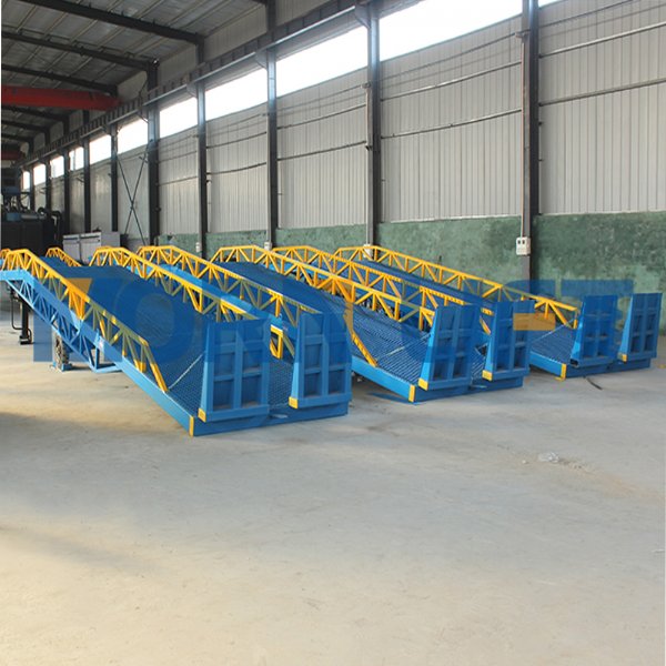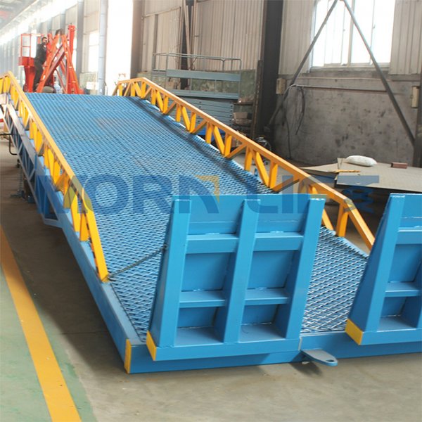 移动式液压登车桥是与叉车配合使用的货物装卸辅助设备,可根据汽车车厢的高低调节高度,叉车可以直接通过..