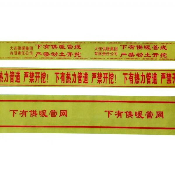 热力警示带 管线警示带又称标记带广泛地应用于各种直埋式燃气管道、输油管道、城市给排水等气、液管道输送系统、电力电 缆、通讯光缆等关于国计民生的第五类运输体系及信息传输系统的警示防护,警示带热力管道警示带 热力警示带 管线警示带对各种情况复杂的城市管网 ,施工现场、道路施工现场、交通事故现场保护,建筑建设施工现场、田野中的直埋管线有着明显的防护警示作用。