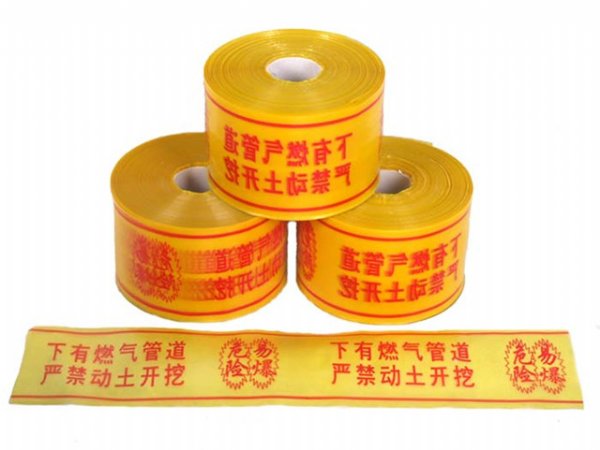 警示带施工方便,施工与埋管同时进行,埋覆于地下与管线中间,铺设在管道上面30-50CM处,起到警示标志作 用,以免今后开挖施工时管线受无谓损伤,而造成重大事故,警示带能够避免因意外损坏造成巨大的财产和经济损失.电力地下热力管道警示带 热力警示带 管线警示带电缆警示带,光缆警示带,自来水警示带,燃气警示带,电力地下电缆警示带,光缆警示带,自来水警示管,PE警示带,警示带又称标记带广泛地应用于各种直埋式燃气管道、输油管道、城市给排水等气、液管道输送系统、电力电缆、通讯光缆等关于国计民生的第五类运输体系及信息传输系统的警示防护,特别对各种情况复杂的城市管网 施工现场、道路施工现场、交通事故现场保护,建筑建设施工现场、田野中的直埋管线有着明显的防护警示作 用,热力管道警示带 热力警示带 管线警示带它施工方便,施工与埋管同时进行,埋覆于地下与管线中间,铺设在管道上面30-50CM处,起到警示标志作 用,以免今后开挖施工时管线受无谓损伤,而造成重大事故,避免因意外损坏造成巨大的财产和经济损失,是 各种直埋式管道、线缆安全防护的经济有效、简单易行的用品。