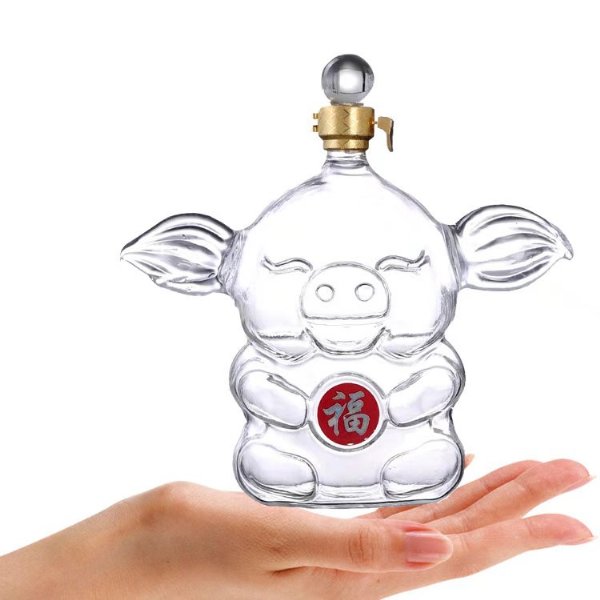 高硼硅玻璃工艺酒瓶 十二生肖大耳朵猪形空酒瓶厂家定做