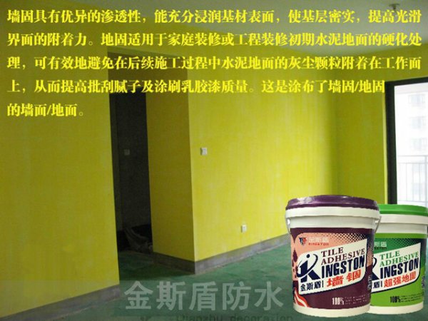 搅拌后浆料的中的活性成份可渗入基面中的毛细孔,微裂纹并产生化学反应形成阻隔水通过的结晶体,并与基面融为一体而形成防水作用,并且潮湿区域可以施工,防水层上可直接铺贴瓷砖及上油漆,防水层耐磨度高。抵御高的静水压:由于结晶体深入基面毛细孔,因此在较高的静水压之下仍保持坚固的防水结构。具有负水面的防水作用:本产品形成的结晶体与基材形成一体,能阻隔各方向的水通过,因此迎水面和背水面的防水均有明显的防水效果。