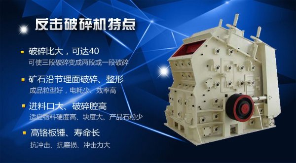 反击式破碎机又叫反击破,主要用于冶金、化工、建材、水电等经常需要搬迁作业的物料加工,特别是用于高速公路、铁路、水电工程等流动性石料的作业,可根据加工原料的种类,规模和成品物料要求的不同采用多种配置形式。