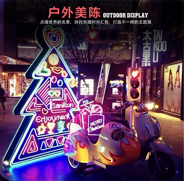 LED柔性霓虹灯已经被广泛应用于建筑物的外墙、轮廓、街道,并被制成广告招牌用于橱窗、舞厅、酒吧、商场、酒店等装饰照明。 - 上海丽雨光电有限公司