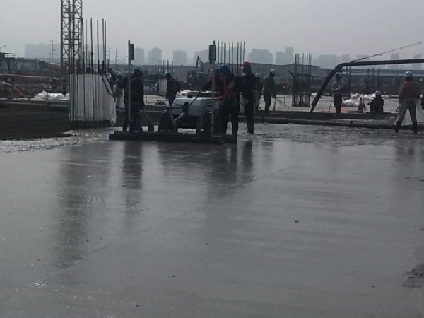 激光整平机是用刮板将高出的混凝土带走并初步刮平,达到设计要求的标高。液压驱动振动马达产生震动,频率为4000次/分钟,带动整个振动板一起对混凝土产生振捣。激光摊铺机找平不需要拉控制线,也不需要支侧模板来控制地面标高,而由激光整平机上的激光测控系统实时控制,只要激光发射器不受干扰,无论激光整平机移动到哪里,都能确保铺筑后的地面整体上的标高不受影响 [3] 。 - 山东精聚地坪工程有限公司