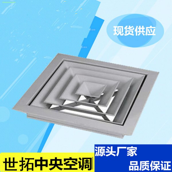旋流风口送出旋转射流,具有诱导比大风速衰减快的特点,在空调通风系统中可用作大风量,大温差送风以减少风口数量,安装在天花板或顶棚上,可用于3米内低空间,也可用于中高度大面积送风,高度甚至可达10米以上。调节起旋器在风口中位置,可获得吹出型,散流型等不同气流型式,此时风速基本不变。