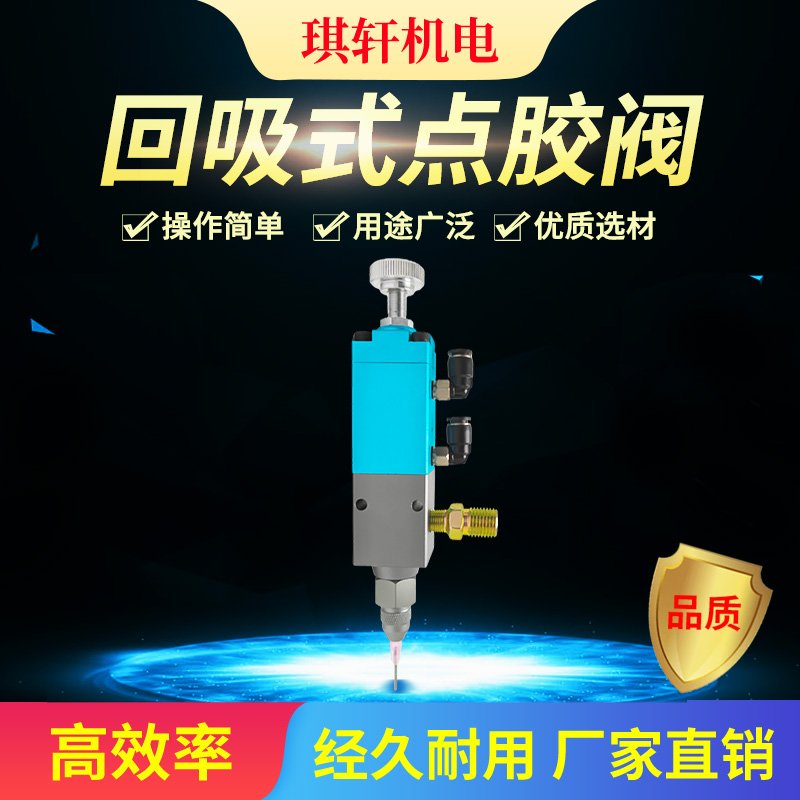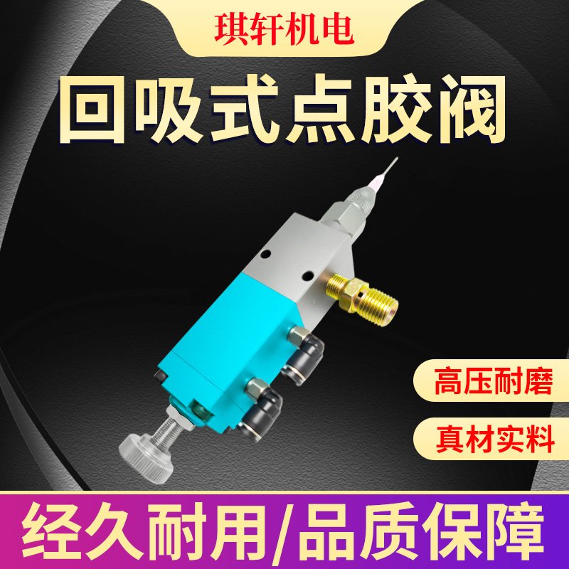 回吸式点胶阀是由汽缸体、阀体及出料体等元件组成,运用柱塞原理,具有回吸功能、